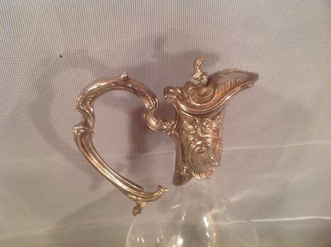 Vin karaffel med hank i sølvplet.