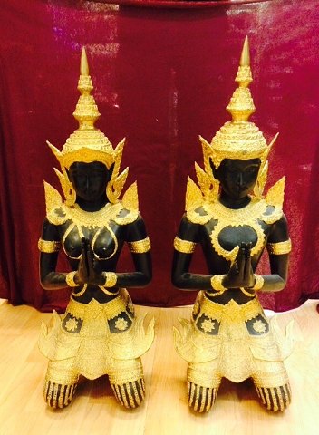 To store Thailandske Tempelvogter af forgyldt og patineret bronze