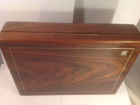Bredde:29,5 cm. Dybde: 22 cm. Højde: 6,4 cm. Med sølv og messing monteringer.