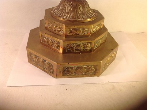 Højde: 43,5 cm. Bredde ved lysholder: 36 cm. sokkel 19,5 x 19,5 cm
