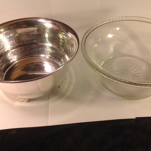 Gehämmert Silver Bowl Tische mit Glas-Einsatz.