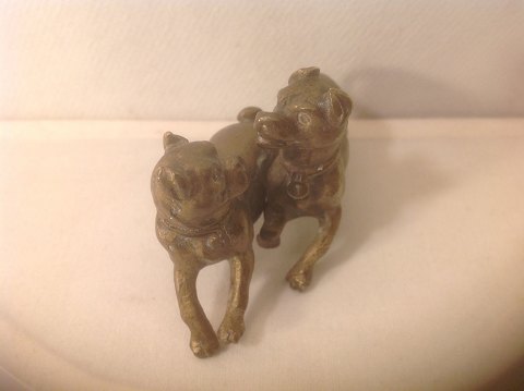 Bronze group of two dogs playing.