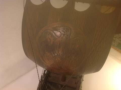 Vikingeskib af bronze. Mast og stand af træ. Fremstillet af Edward Aagård for Iron Art, Copenhagen 1900 tallet.
