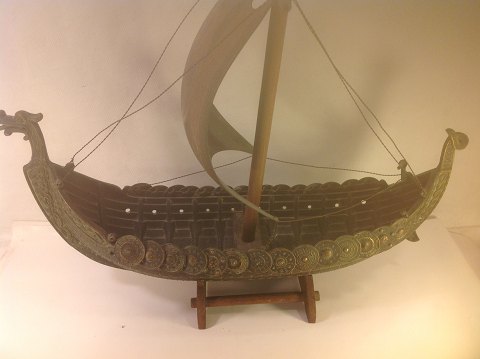 Viking ship of bronze. Mast and stand of wood. Manufactured by Iron Art, Copenhagen.