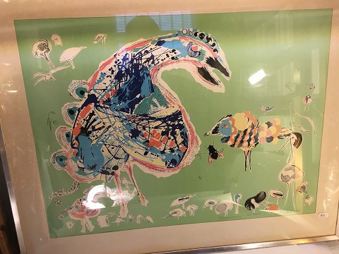 Danmark - Sverige: Fuglemor . Farvelitografi.( Prøvetryk). Signeret.: Jørgen Nash 1970