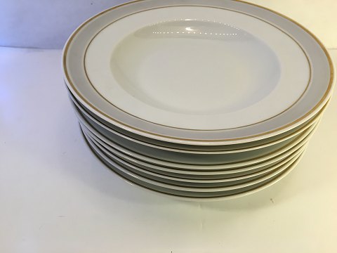 Tiber Dyb middag 21 cm. Hvid med Lysegrå Bord og Guldkant.