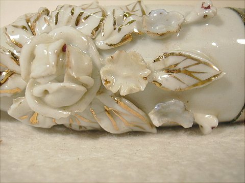 Flot gammel porcelæns langpibe med sølv beslag og blomster dekoration.