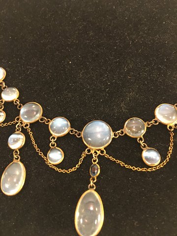 Hals colier med månesten i forløb . og en lille safir.