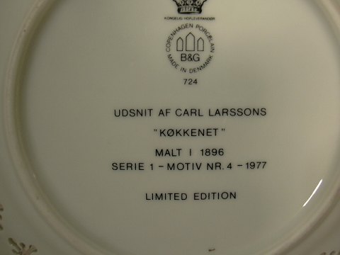 Beautiful plate from Bing & Grøndahlmed sample of Carl Larson motif kitchen painted in 1896tallerknen series is a motif 4 of 1977