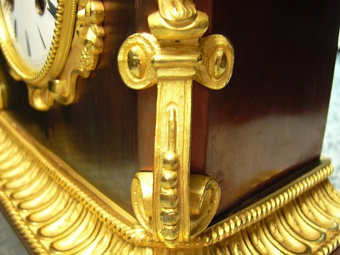Fransk kaminur af Lueforgyldt og patineret bronze, på urhus kvinde med kastagnetter og fløjtespillende mand, på urets sider kat og abe med musikinstrumenter, Skive af hvid emalje med små afslag og hårrevner. Værk stemplet Japy Freres Medaille D'Or og E et Cie. anno 1800 tallet begyndelse