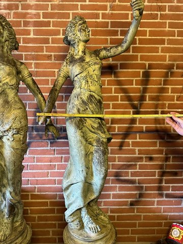 Pair of Late Empire bronze lamps. Roman style anno 1900 first half of the century. Base flanked with floral tendrils and buck heads. Early provenance: Vinderslevholm castle is a manor house whose history goes back to the 15th century according to Seller. Height: 230 cm Width 60 cm. lamp glads for torch in the hand is missing. contact for viewing
