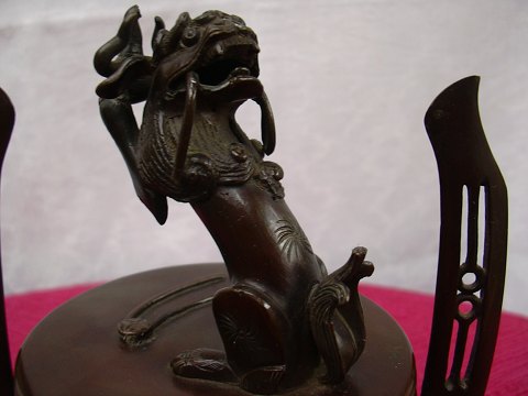Japanese incense jar in bronze with lid with temple lion height 16.5 cmStump at bottom see fotoanno 1800's middle