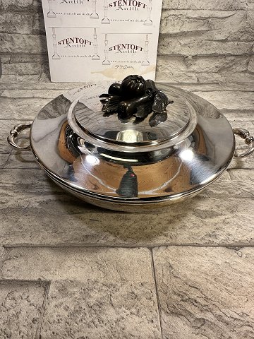 Kitchen equipment, Sheffield, together with lg dish, glass jar dish Fheffield W 27 cm, L 38 cm and dish. W 23 cm bowl H 10 cm, W 14 cm glass jar H 7 cm