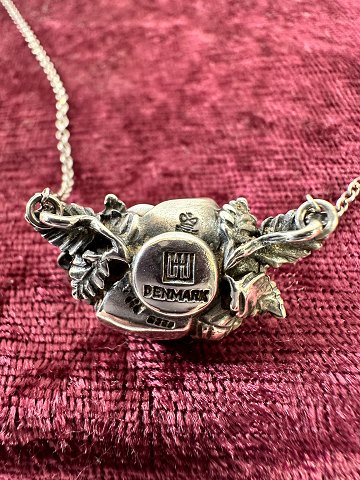 Sterlingsilber 925. Vintage-Silberhalskette mit Porzellanrose.
