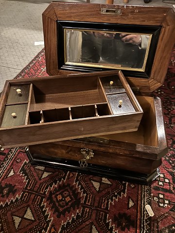 Old Danish sewing chest with mirror, compartment, pulleys, approx. from the 1900s. H 13.0 W 30.0 D 17.5
