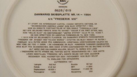 Bing & Grondahl. B & G. Ship Platte steamer Frederik Vlll 1913 - 1936 Contact for price
