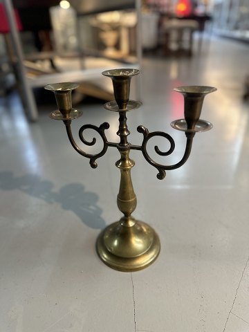 Tre-arme lysestager i messing , balusterfod og svungne arme i klassisk still , fra 1900 tallet