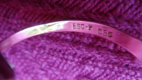 med 1 blå 0,25 ct. og 2 hvide safier 0,09 ct. i alt 0,43 ct.