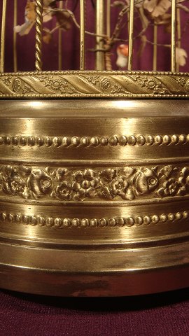 Mechanische Vogel in einem Käfig aus Messing mit Wicklung am unteren Vogel singt und bewegt Kopf und Schnabel