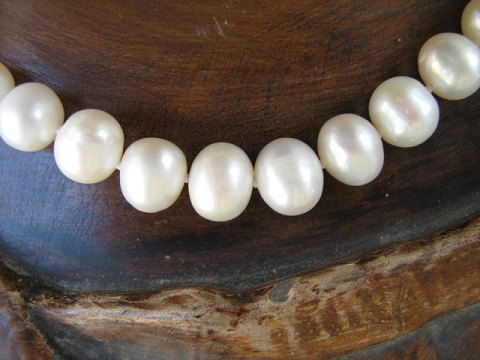 Perlekæde 5 - 6 mm saltvandsperler guldlås 14k 585 L: 41 cm.