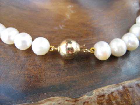Perlekæde 5 - 6 mm saltvandsperler guldlås 14k 585 L: 41 cm.