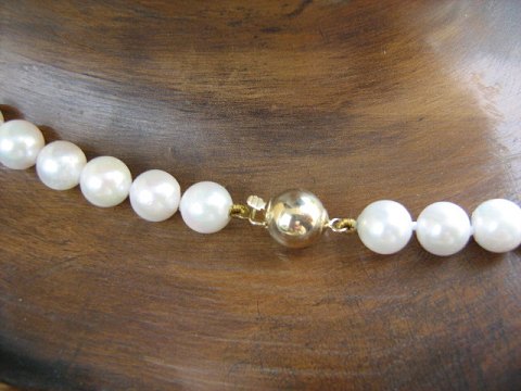 7 mm Saltvands perlekæde med 14k guldlås vare nr. 68406