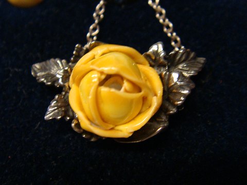 Royal copenhagen porcelæns rose påsat Sølv samt ørestik SOLGT