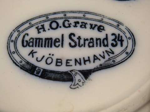 den Danskes importør H.O.Grave Gl.strand 34 Kjøbenhavn han åbnede sit firma i 1855, og blev hurtigt byens største handlende med porcelæn og fajance tallerkner.