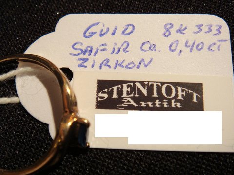 Ring med blå safir ca 0,40 ct og hvide zirkoner