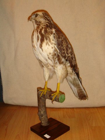 Stuffed buzzard on stand