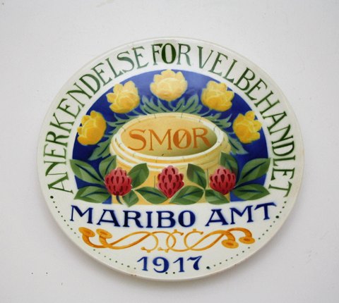 Osteklokke på fad med tranemotiv, Kastrup Glasværk.