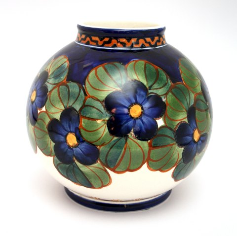 Royal Copenhagen, Baca Fajance i brunlige og blå glasur, firkantet vase designet af Nils Thorson. Nr. 720/3361. Højde: 11 cm. Diameter top 4,5 cm. Pris: SOLGT