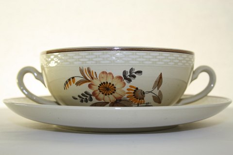 Royal Copenhagen, Tranquebar lyseblå fajance med mørkeblå tulipan og flettet bort. Designet af Christian Joachim. Produceret fra 1914 til 1969 på Aluminiafabrikken, hvorefter det overgik til Royal Copenhagen.