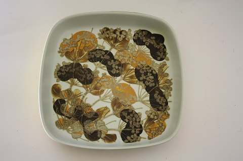 Royal Copenhagen, Bacca firkantet fad designet af Ellen Malmer. Dek.nr. 962/3775. 25,5 x 25,5 cm. Højde 4 cm. Pris: SOLGT