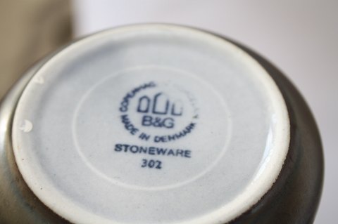Bing & Grøndahl, Tema designet af Jens H Quistgaard 1970. Marmelade/sukker med låg. Nr. 302. Højde 10 cm. Diameter 8 cm. Pris: 125 kr. stk. Lager: 3