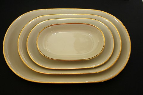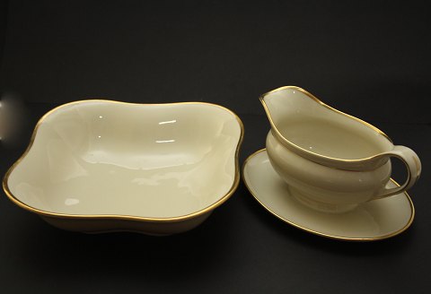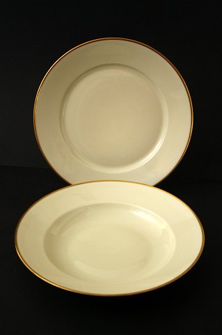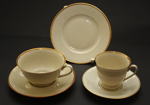 Kjøbenhavns Porcellains Maleri, Vallø cremefarvet glasur med guldbelægning. Stellet er fremstillet fra midten af 1930'erne. Stellet er i pæn stand.