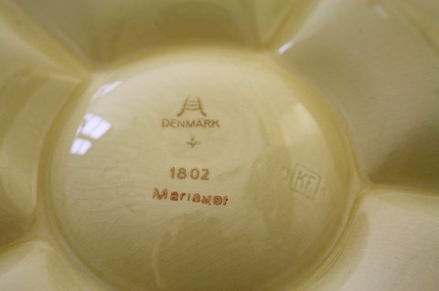 Aluminia, Mariager dek.nr. 257, håndmalet overglasur. Designet af Thorkild Olsen. Produceret i perioden 1934-57. Kabaratfad. Diameter 27. God stand med småkrakeleringer. Pris: SOLGT