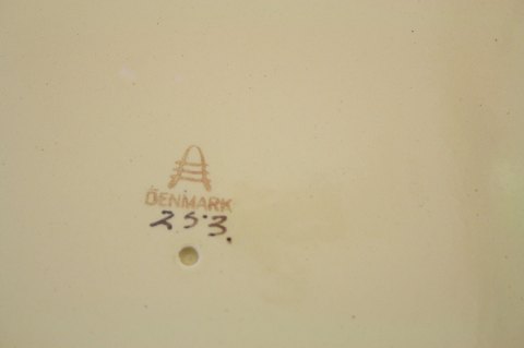 Aluminia, Aakjær dek.nr. 253, håndmalet. Designet af Thorkild Olsen. Produceret i perioden 1934-39.