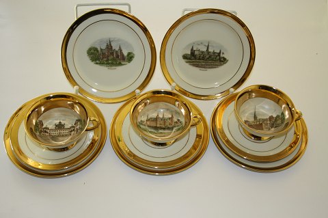 Copenhagen-Denmark. Danske slotte. Porcelæn med brede guldkanter og motiver af danske slotte.