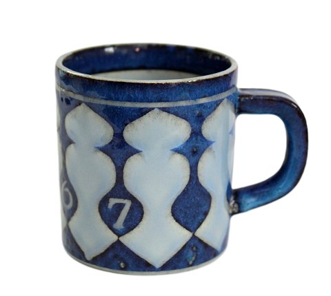 Aluminia og Royal Copenhagen, Lille årskrus i kunstfajance. Nr. 3495. Årskrusne er produceret fra perioden 1967 til 2014. Højde 7,5 cm. Diameter 6,8 cm.