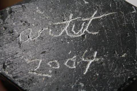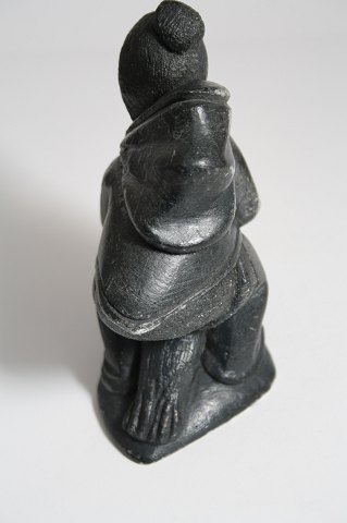 Grønlandsk fanger med sæl, fedtsten. Signeret ANTUT 2004. Vægt 1085 gram. Højde 15 cm. Længde 11 cm. SOLGT.