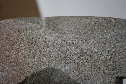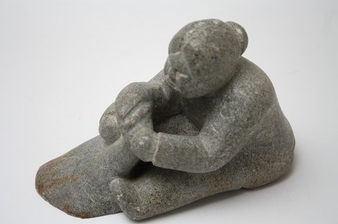 Grønlandsk kone der ordner skind fedtsten. Signeret SARA R 75. Vægt 1,7 kg. Højde 12,5 cm. Længde 17 cm. Pris: 1.950 kr.
