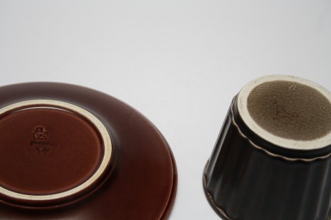 Cigaretbæger i brun glasur. Højde 6,5 cm. Diameter 8 cm. Pris: 250 kr.