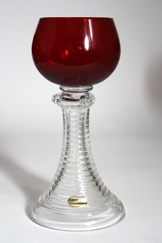 Rømer vinglas med vinrød kumme, Reijmyre glasværk.