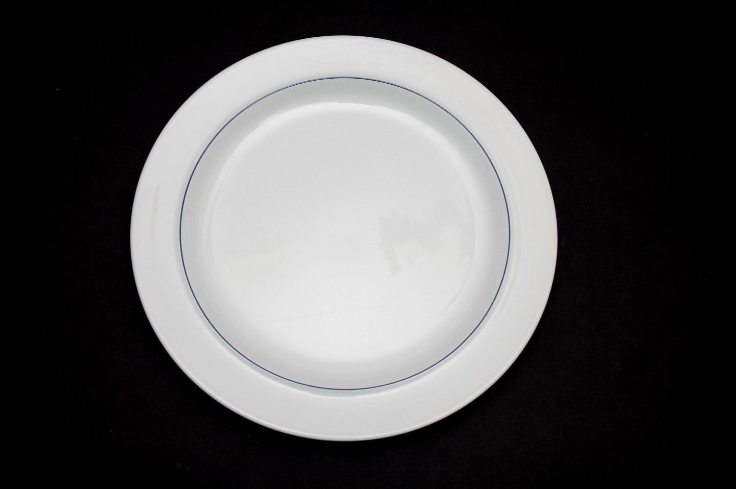 Royal Copenhagen fajance, Blåkant tidligere produceret under Aluminia. Designet af Grethe Meyer i 1965. Frokosttallerken. Nr. 621. Diameter 21 cm. I. sortering. Almindeligt brugsslid. Pris: 175 kr. stk. Lager: 4