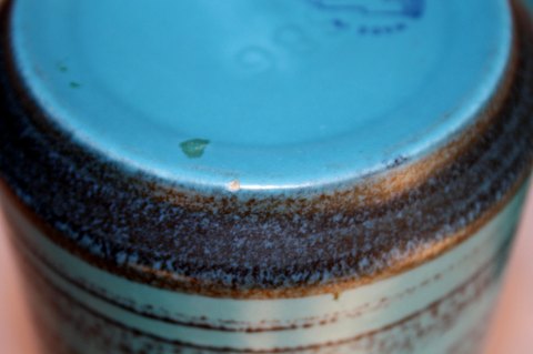 Knabstrup keramik i turkisblåt med sorte striber.