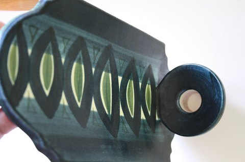 Knabstrup keramik, Dekoreret af Waltraud Praschak og formgivet af Günther Praschak 1966-70. Lysestage. 27,5 x 13,5 cm. Pris: SOLGT