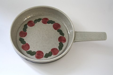 Rørstrand, Birgitta. Gråt stoneware med håndmalede blomster og brun kant. Pande. Højde 4,5 cm. Diameter 19,5 cm. Pris: SOLGT