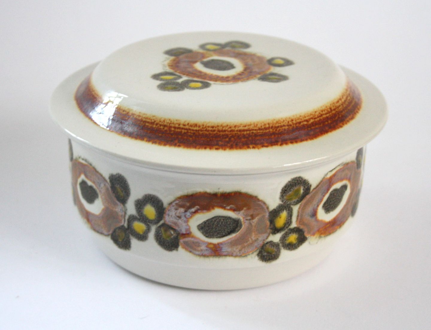 Aluminia kunstfajance, Nucella skål med låg. Dek.nr. 3467. Højde 8,5 cm. Diameter 16,5 cm. Pris: 375 kr.