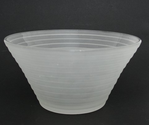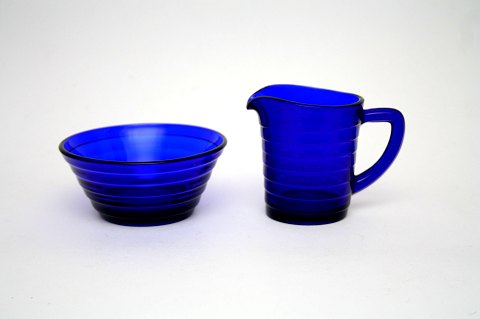 Holmegaard, Broksø presset glas 1938-1941, designet af Jacob E Bang. Mørkeblå frugtskål. Diameter 21,5 cm. Højde 9 cm. Pris: 225 kr. Lager: 1